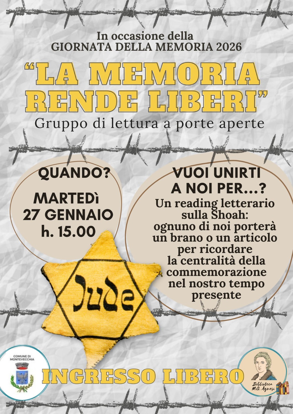 Un incontro del Gruppo a porte aperte in cui, chi vorrà, potrà partecipare e condividere la lettura di un brano o un articolo sulla centralità e sull'attualità della Giornata della Memoria OGGI