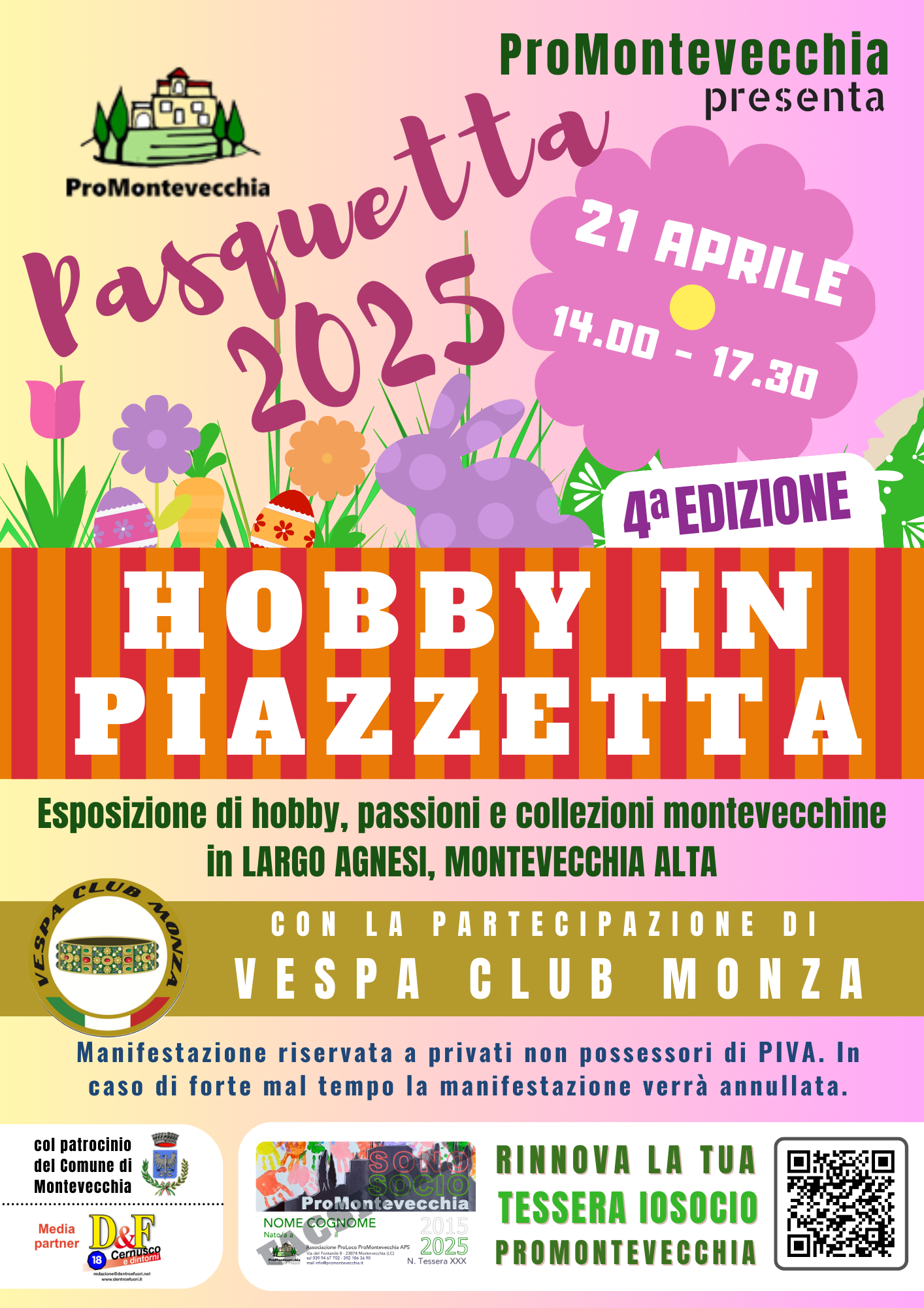 Cos'è 21/04/2025dalle ore 14:00 alle ore 17:00Esposizione di hobby, passioni e collezioni presso Largo Agnesi. Hobby in piazzetta
