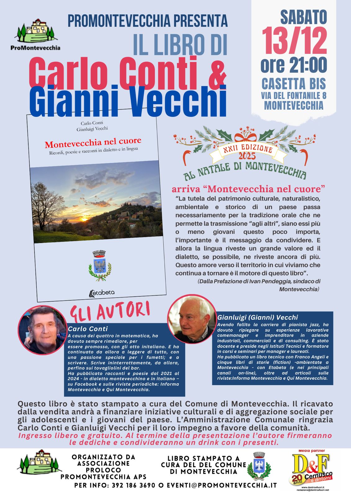 Aspettando il Natale di Montevecchia, siamo entusiasti di presentarvi "Montevecchia nel cuore", il nuovo libro che celebra la nostra storia, le nostre radici e il nostro amato dialetto, scritto dai concittadini Carlo Conti e Gianluigi (Gianni) Vecchi!